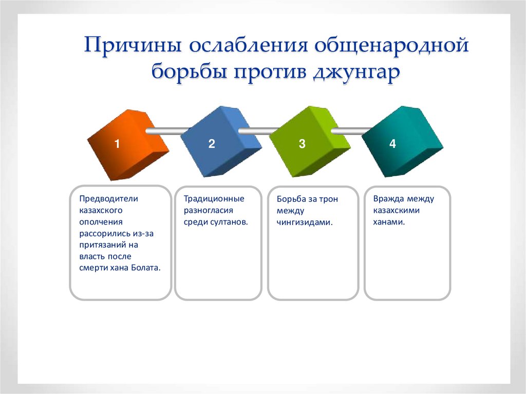 30. Причины поражения казахов в борьбе с джунгарами