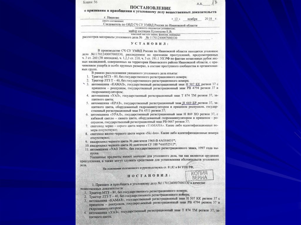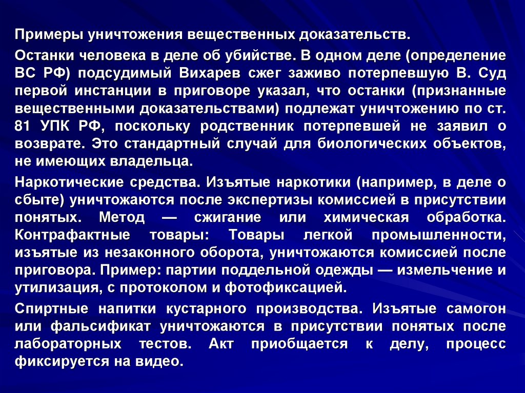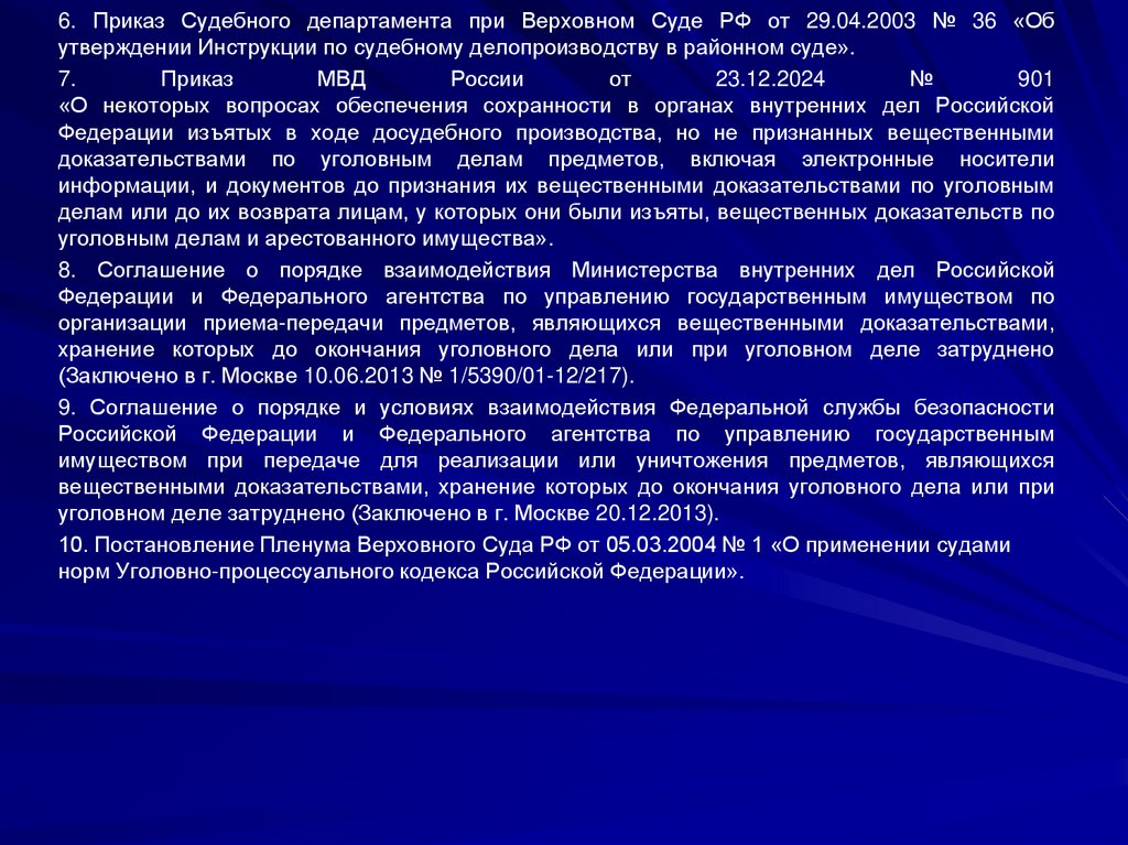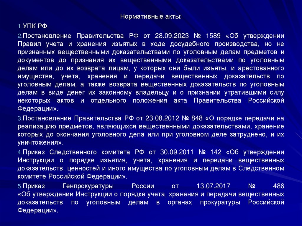 Инструкции о порядке изъятия, учета, хранения и передачи вещественных