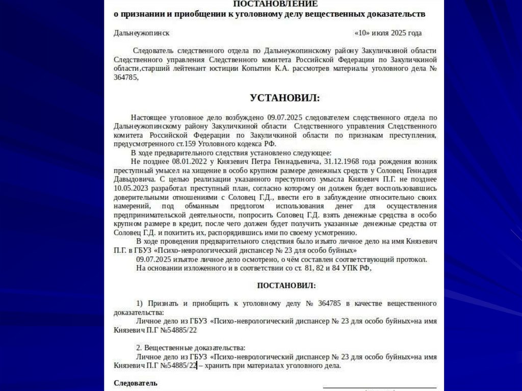 доказательств, ценностей и иного имущества по уголовным делам в Следственном