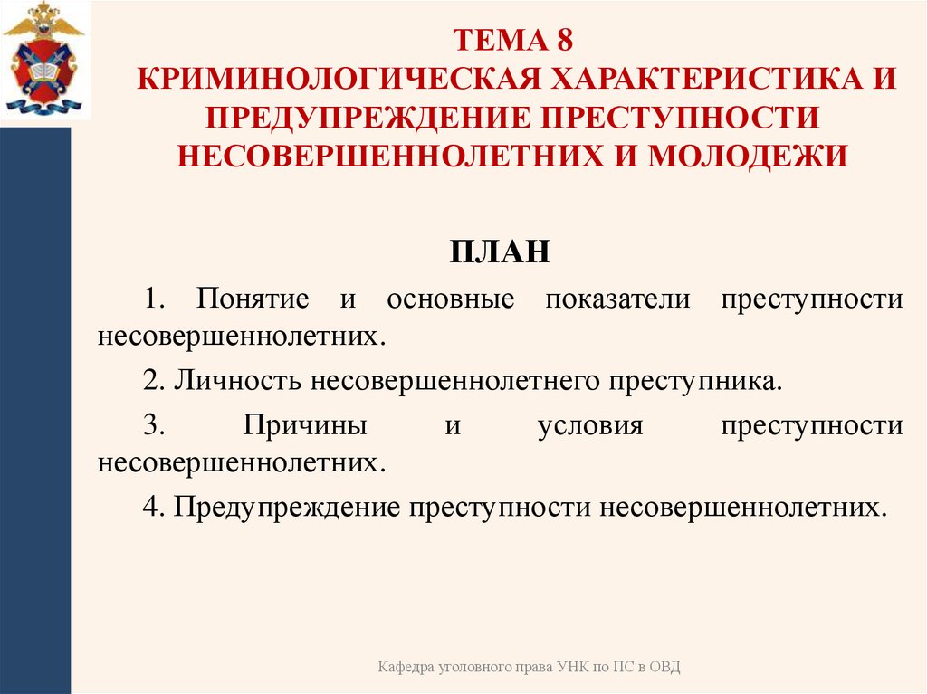 1. тема 8 КРИМИНОЛОГИЧЕСКАЯ ХАРАКТЕРИСТИКА И ПРЕДУПРЕЖДЕНИЕ ПРЕСТУПНОСТИ НЕСОВЕРШЕННОЛЕТНИХ И МОЛОДЕЖИ