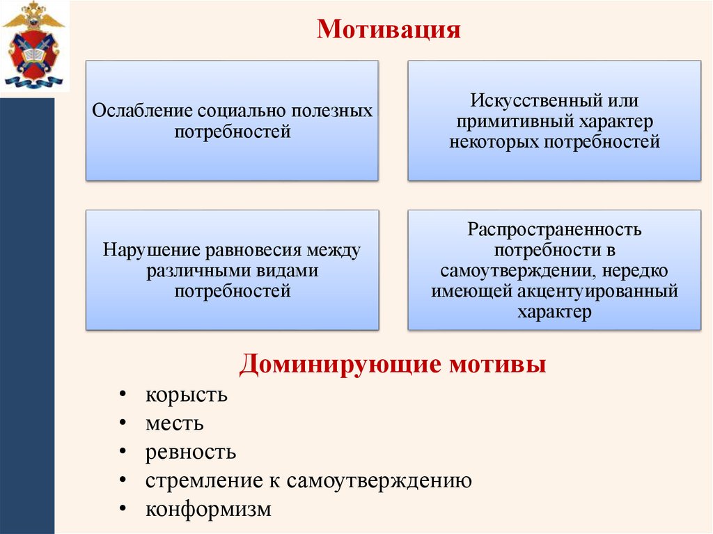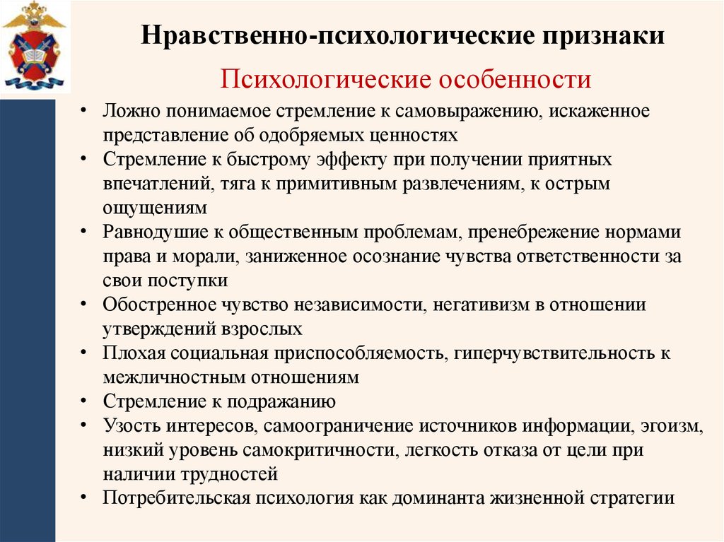 отношением к ним, деформацией потребностномотивационной сферы, эгоистичной ориентацией,