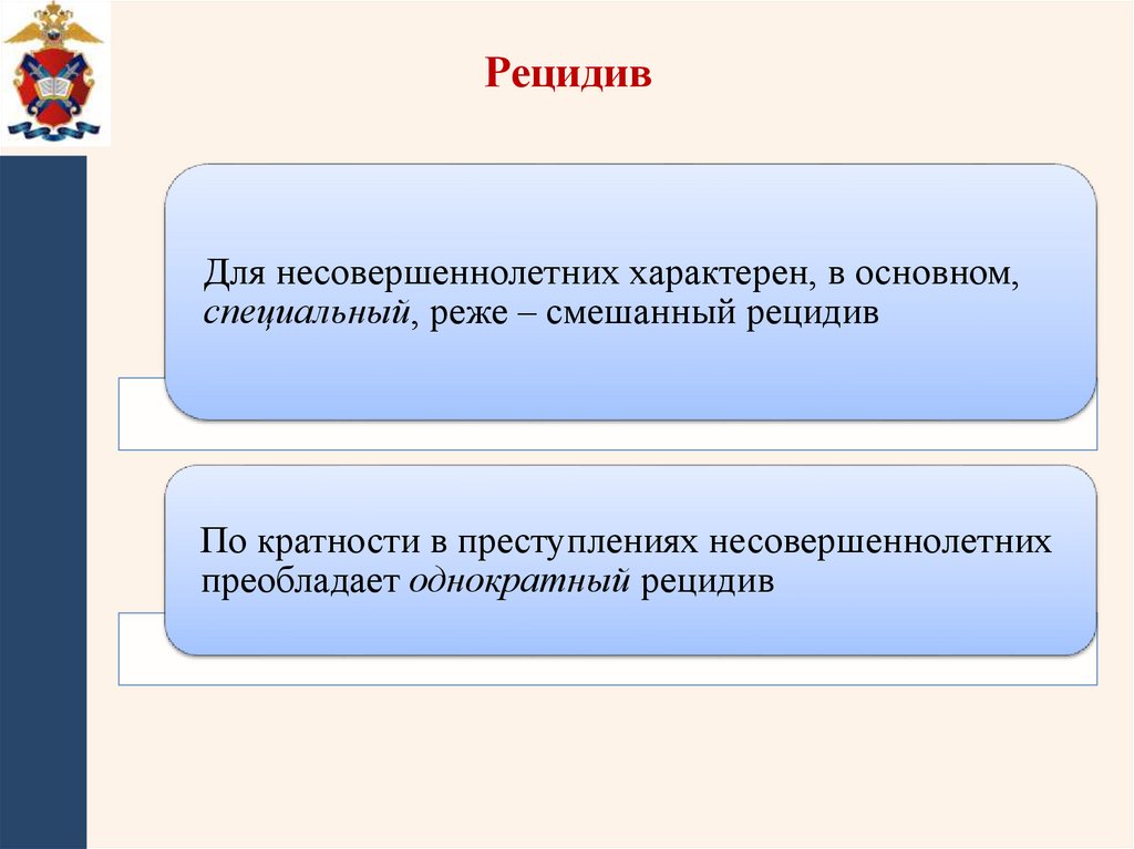 РецидивДля несовершеннолетних характерен, в основном,