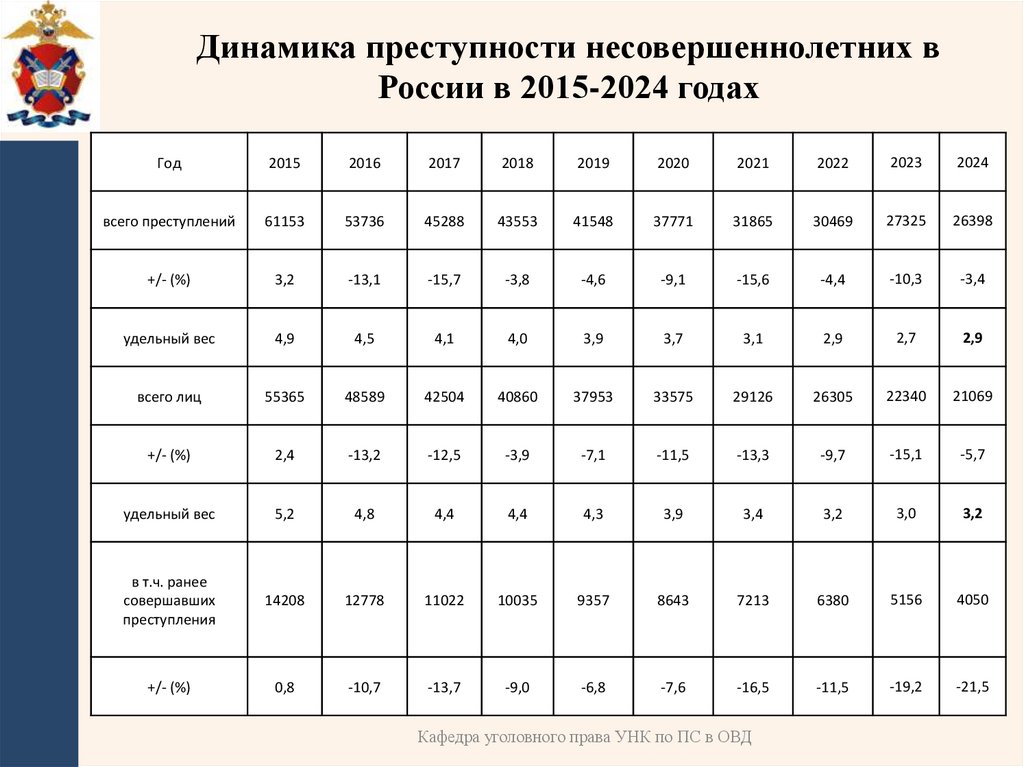 1. ПОНЯТИЕ И ОСНОВНЫЕ ПОКАЗАТЕЛИ ПРЕСТУПНОСТИНЕСОВЕРШЕННОЛЕТНИХ