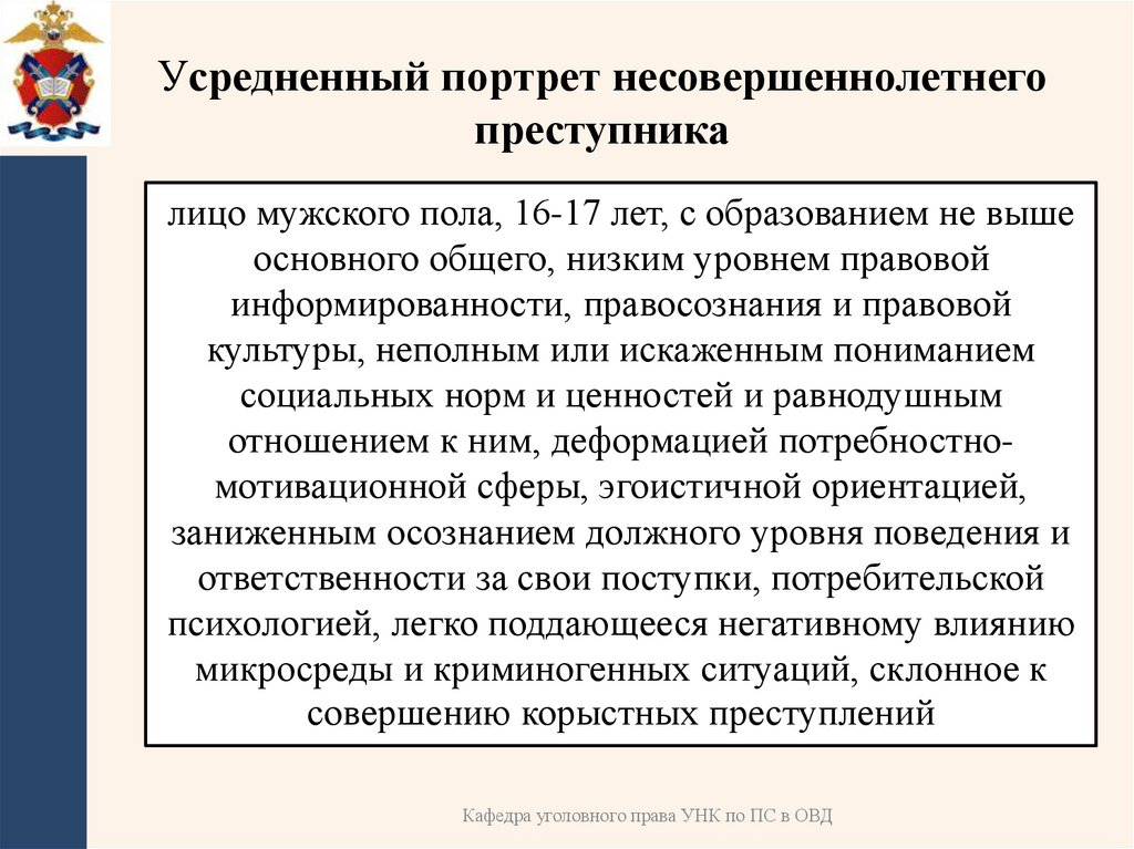 Усредненный портрет несовершеннолетнегопреступника