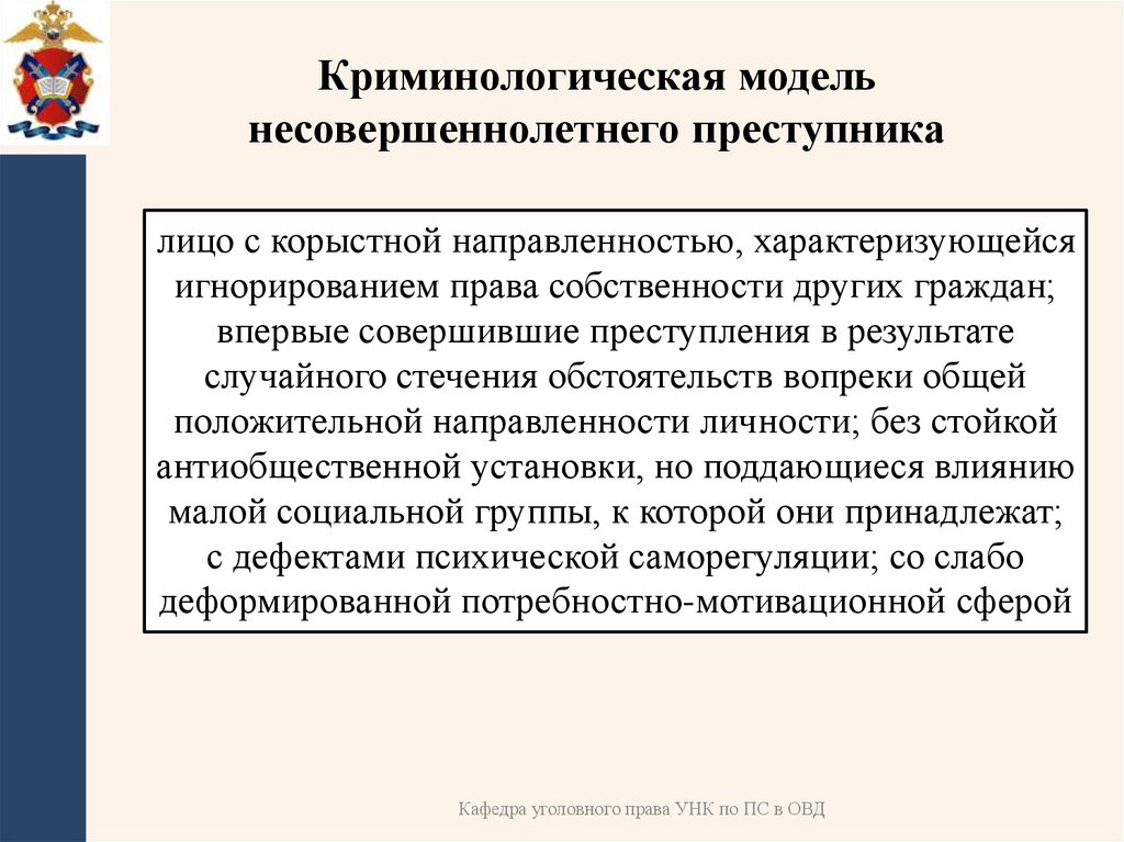 Криминологическая модельнесовершеннолетнего преступника