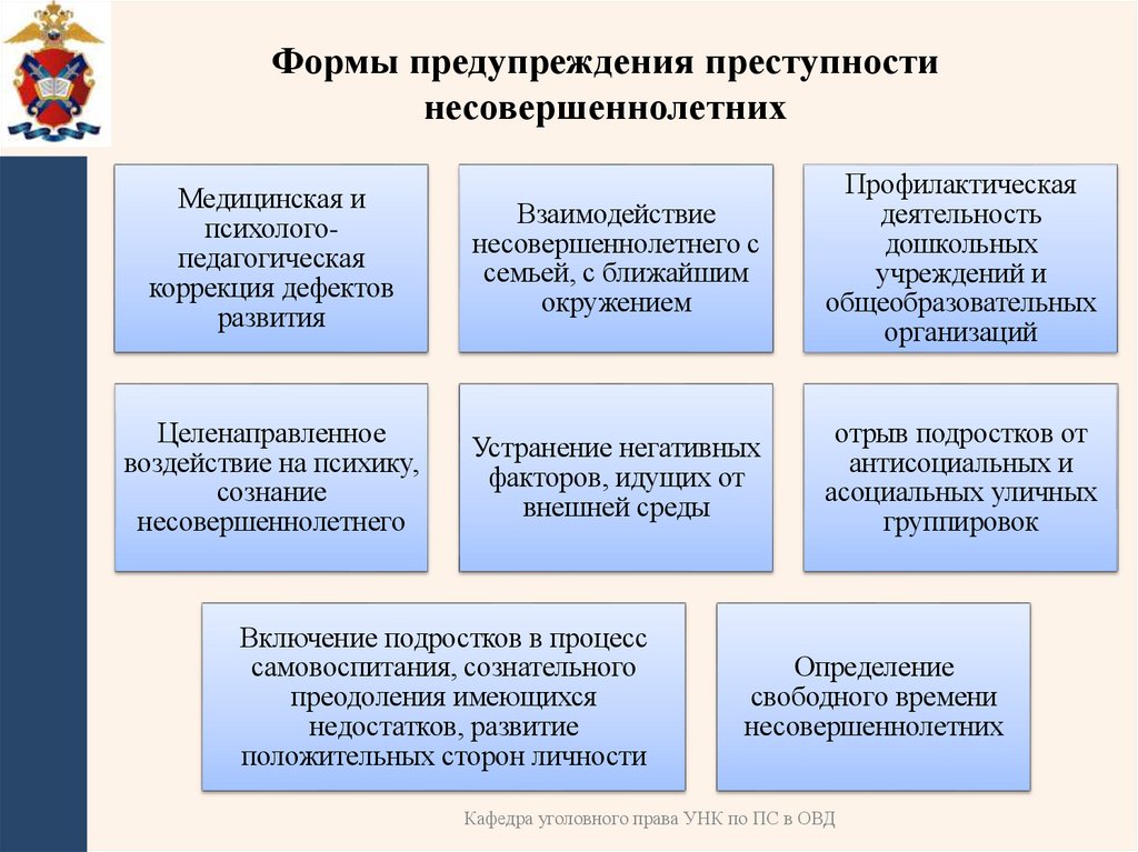 Формы предупреждения преступностинесовершеннолетних