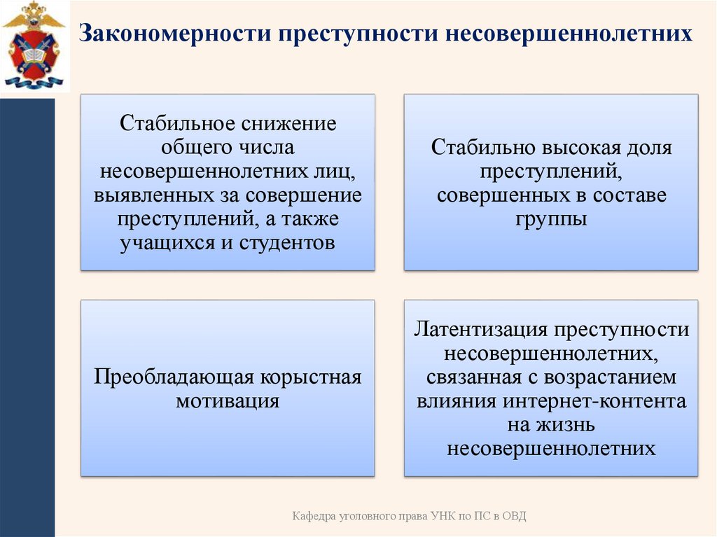 4. ПРЕДУПРЕЖДЕНИЕ ПРЕСТУПНОСТИ НЕСОВЕРШЕННОЛЕТНИХОсновной НПА: Федеральный закон от 24.06.1999 № 120-ФЗ «Об