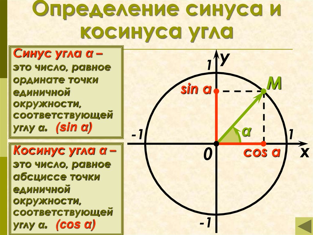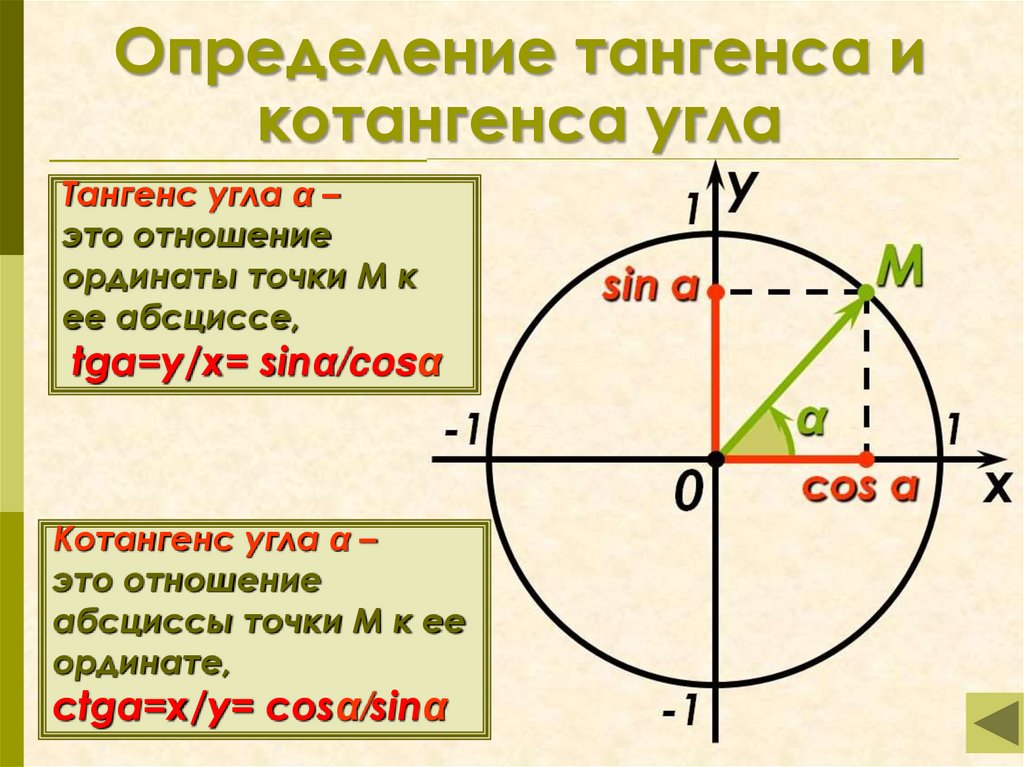 Определение синуса и косинусаОпределение тангенса и котангенса