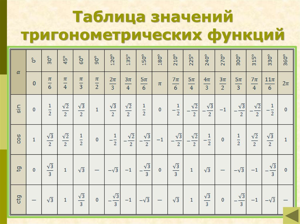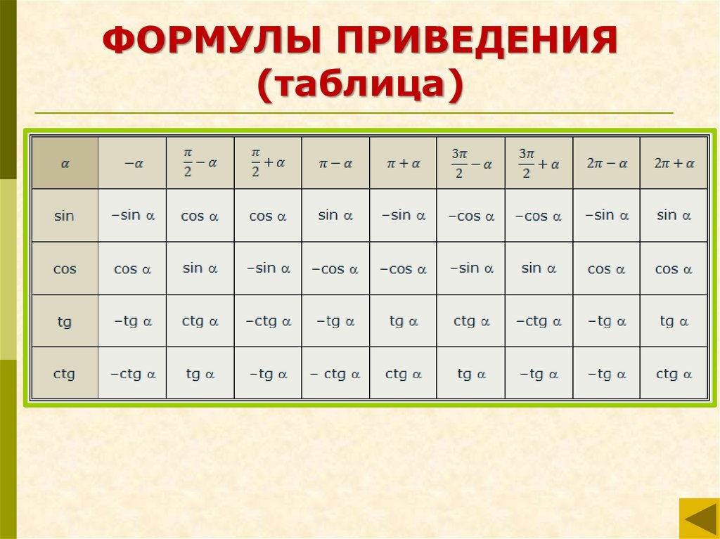 ФОРМУЛЫ ПРИВЕДЕНИЯ(таблица)