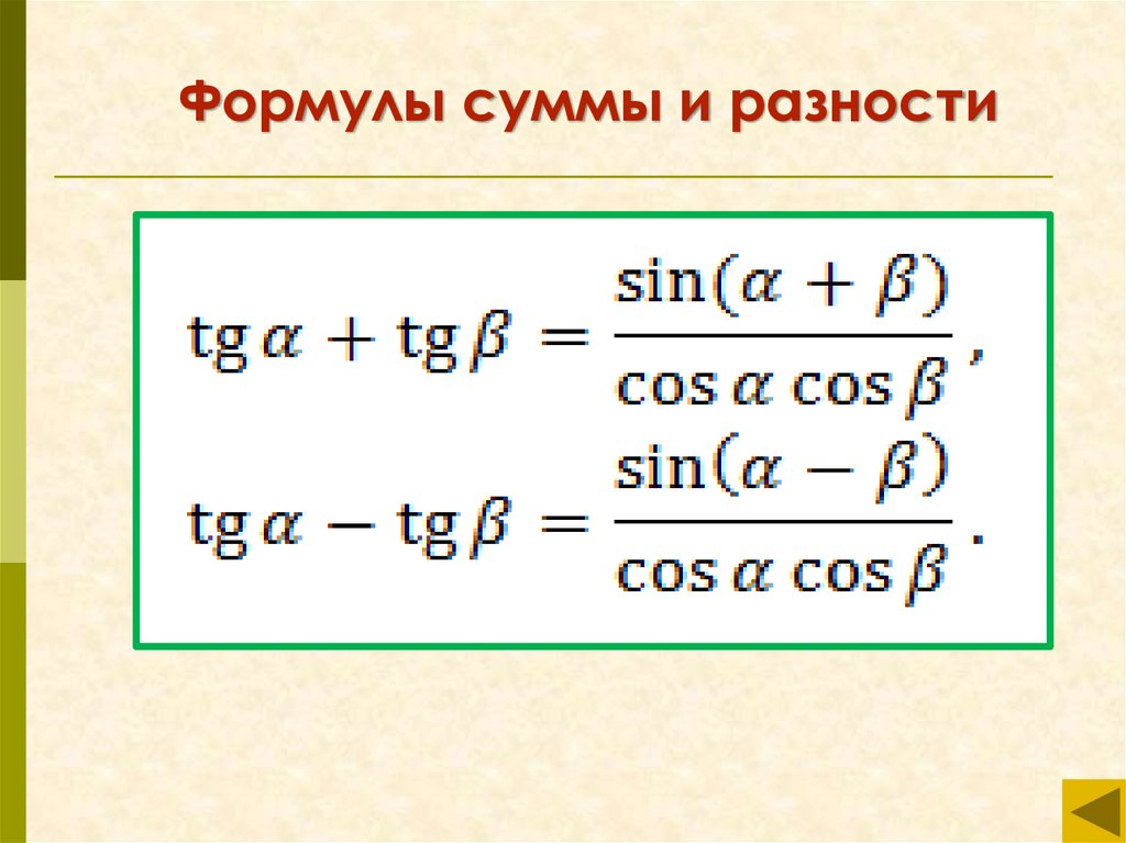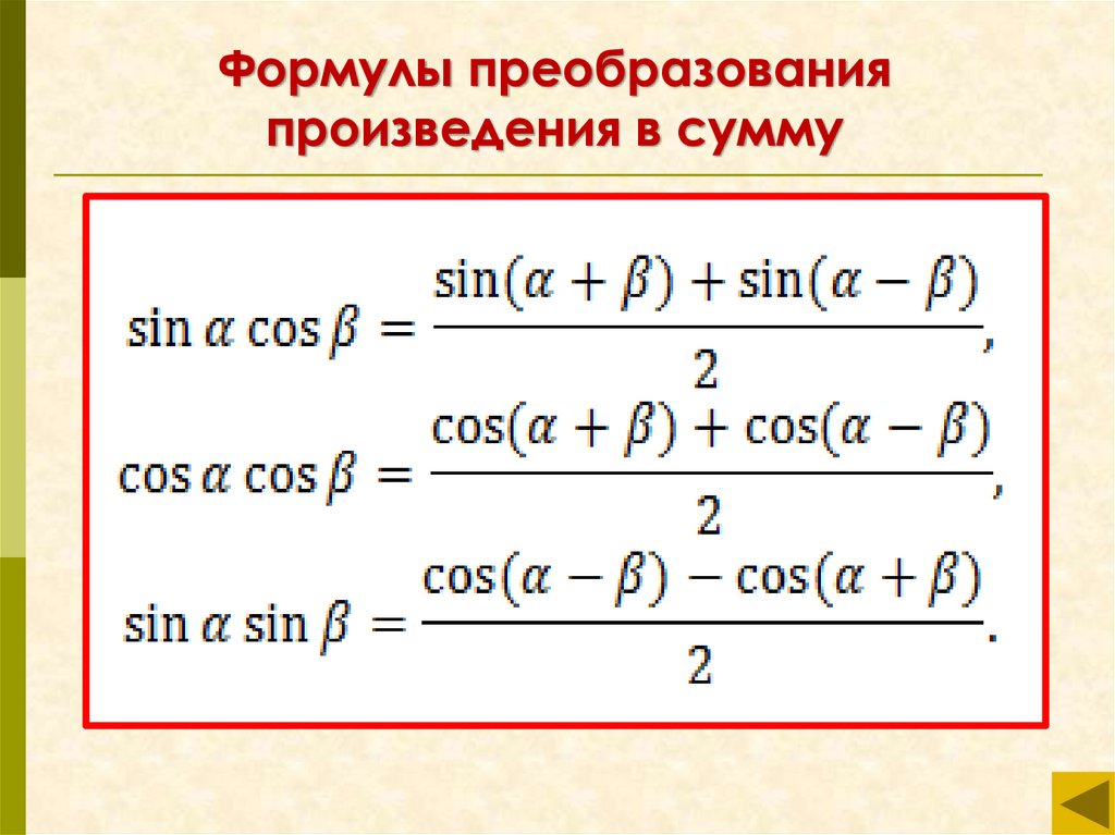 УФОРМУЛЫ ПРИВЕДЕНИЯ