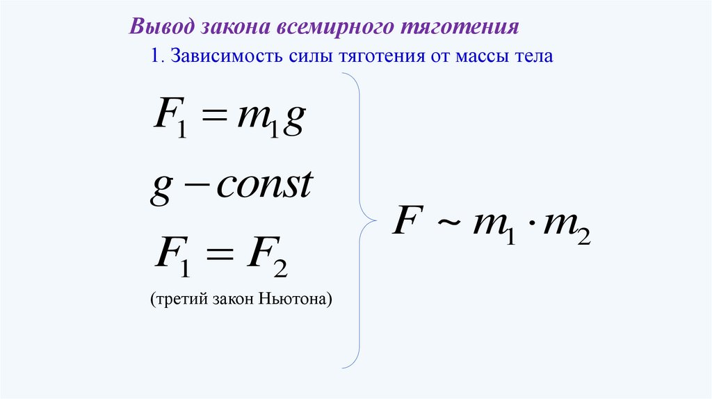 Вывод закона всемирного тяготения1. Зависимость силы тяготения от массы тела