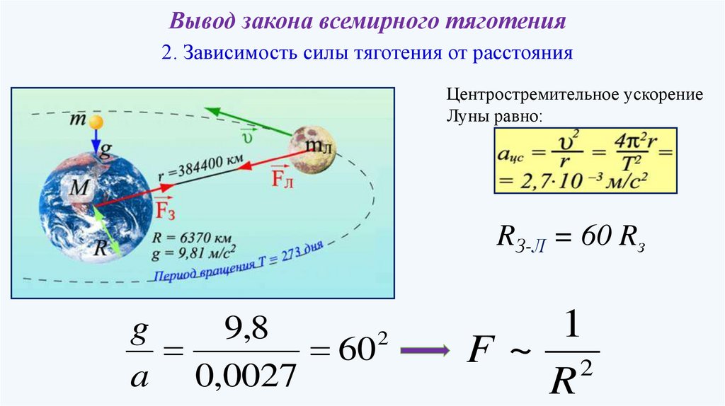Вывод закона всемирного тяготения2. Зависимость силы тяготения от расстояния
