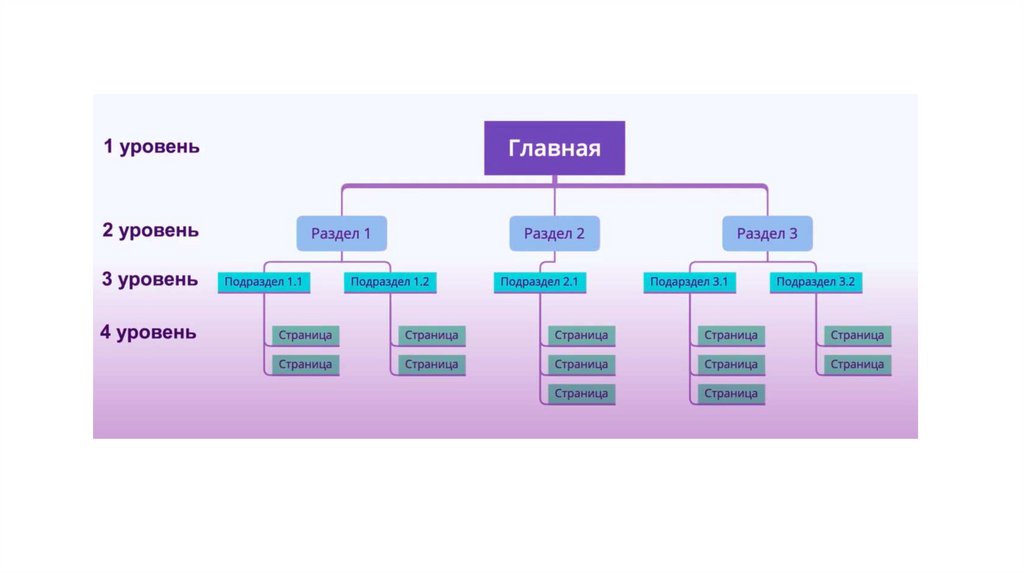 Структура сайта состоит из нескольких уровней. 1, 2, 3 уровни – это