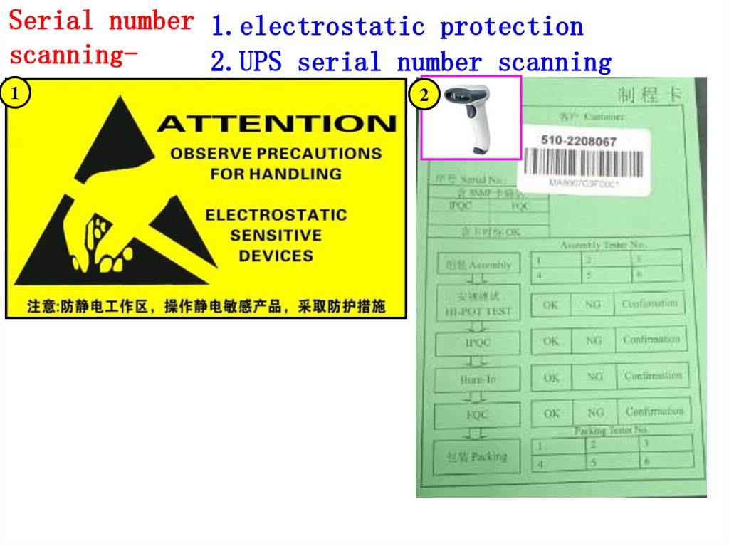 Serial number 1.electrostatic protectionscanning2.UPS serial number scanning