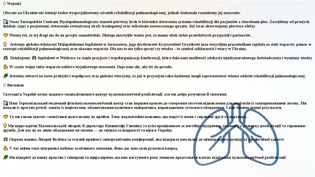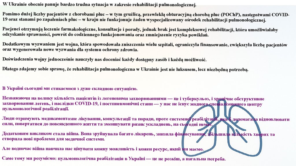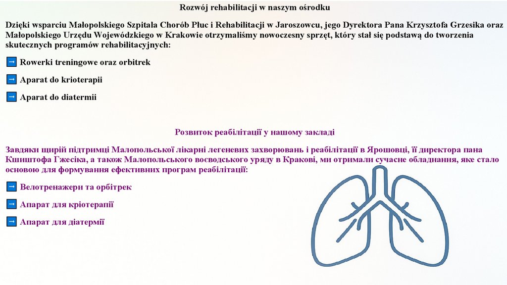 Розвиток пульмонологічної реабілітації в Україні та роль і підтримка Малопольської лікарні