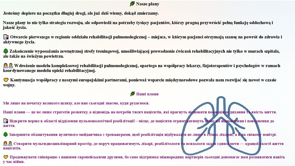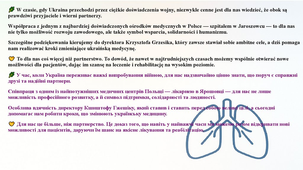 Rozwój rehabilitacji pulmonologicznej w Ukrainie oraz rola i wsparcie Małopolskiego SzpitalaChorób Płuc i Rehabilitacji w tym procesie