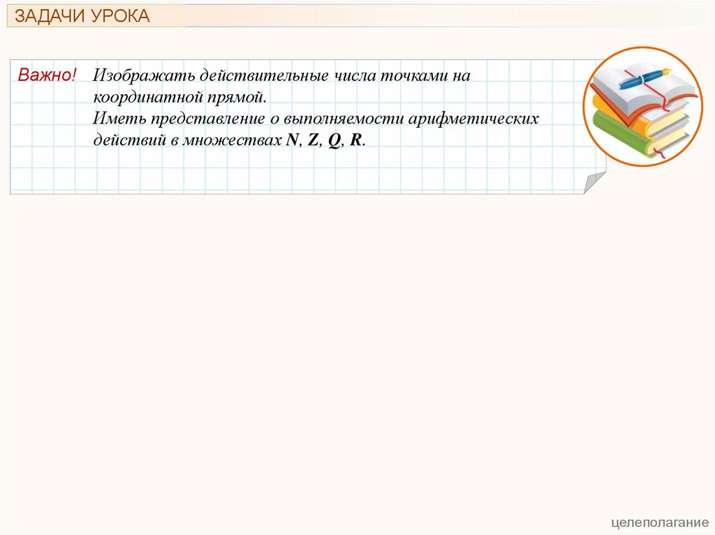 ЗАДАЧИ УРОКАВажно! Изображать действительные числа точками на