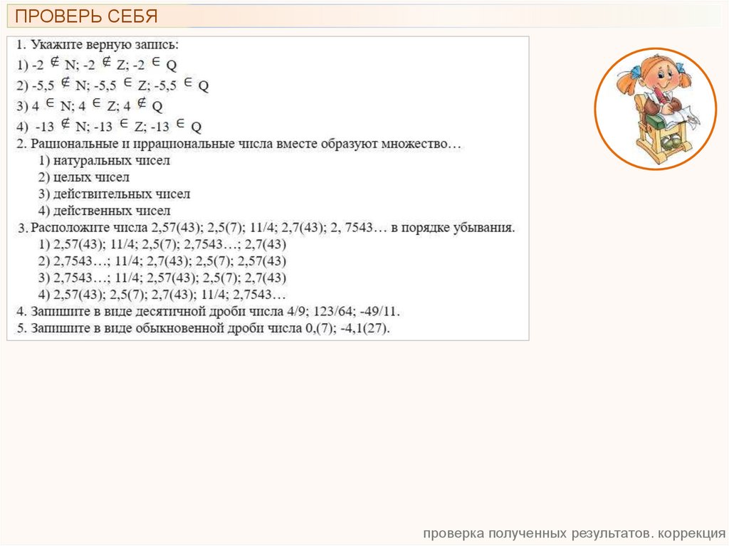 ПРОВЕРЬ СЕБЯпроверка полученных результатов. коррекция