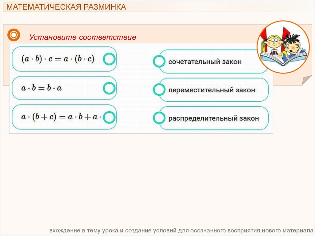 МАТЕМАТИЧЕСКАЯ РАЗМИНКАУстановите соответствие