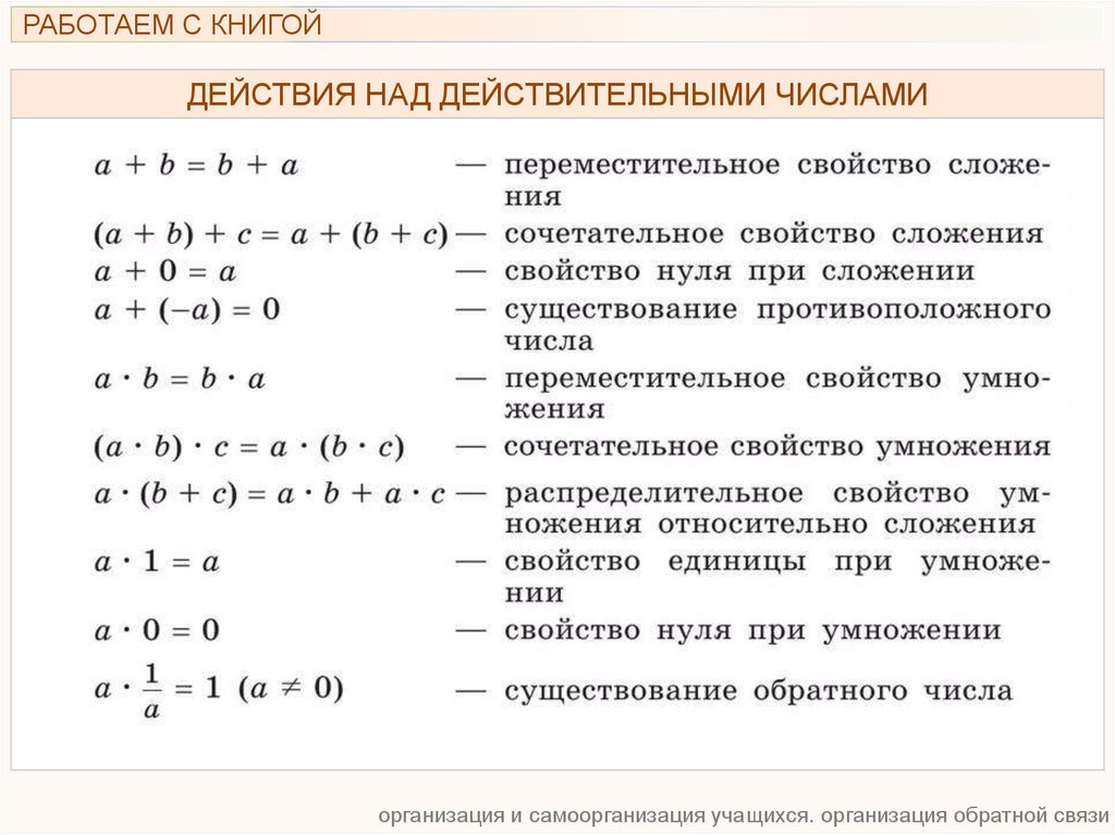 РАБОТАЕМ С КНИГОЙДЕЙСТВИЯ НАД ДЕЙСТВИТЕЛЬНЫМИ ЧИСЛАМИ