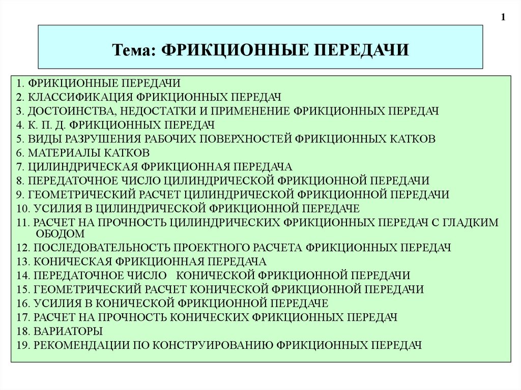 1. Тема: ФРИКЦИОННЫЕ ПЕРЕДАЧИ