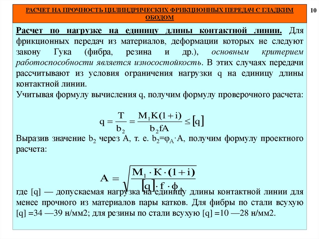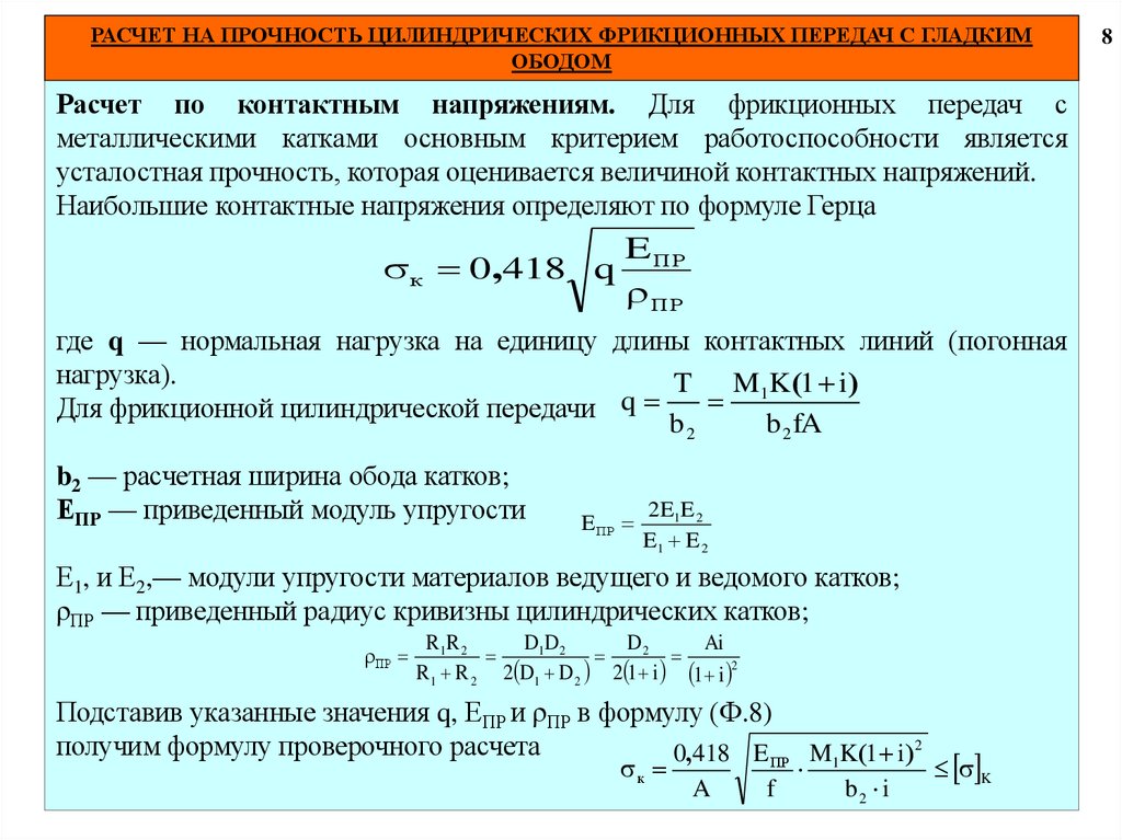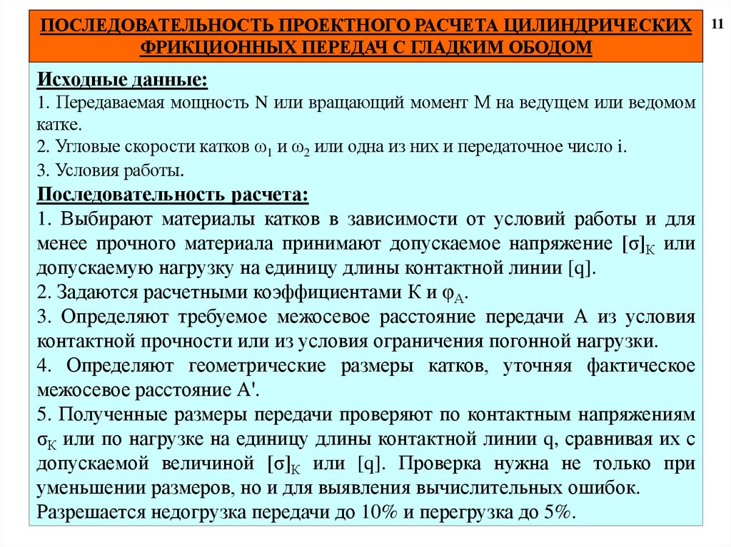 11. РАСЧЕТ НА ПРОЧНОСТЬ ЦИЛИНДРИЧЕСКИХ ФРИКЦИОННЫХ ПЕРЕДАЧ С ГЛАДКИМ
