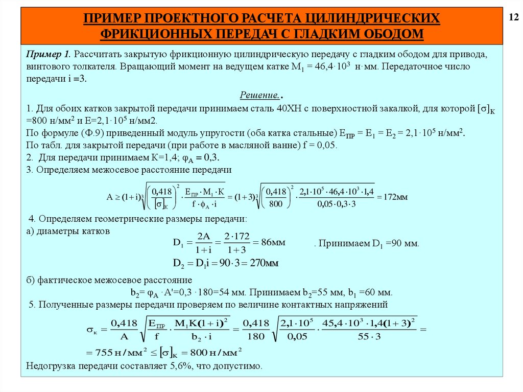 12. ПОСЛЕДОВАТЕЛЬНОСТЬ ПРОЕКТНОГО РАСЧЕТА ФРИКЦИОННЫХ ПЕРЕДАЧ