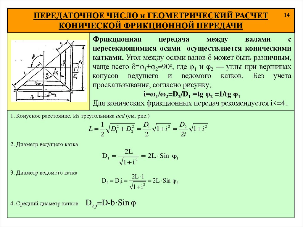 14. ПЕРЕДАТОЧНОЕ ЧИСЛО КОНИЧЕСКОЙ ФРИКЦИОННОЙ ПЕРЕДАЧИ