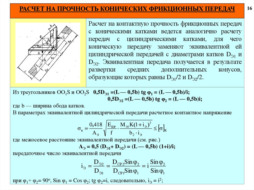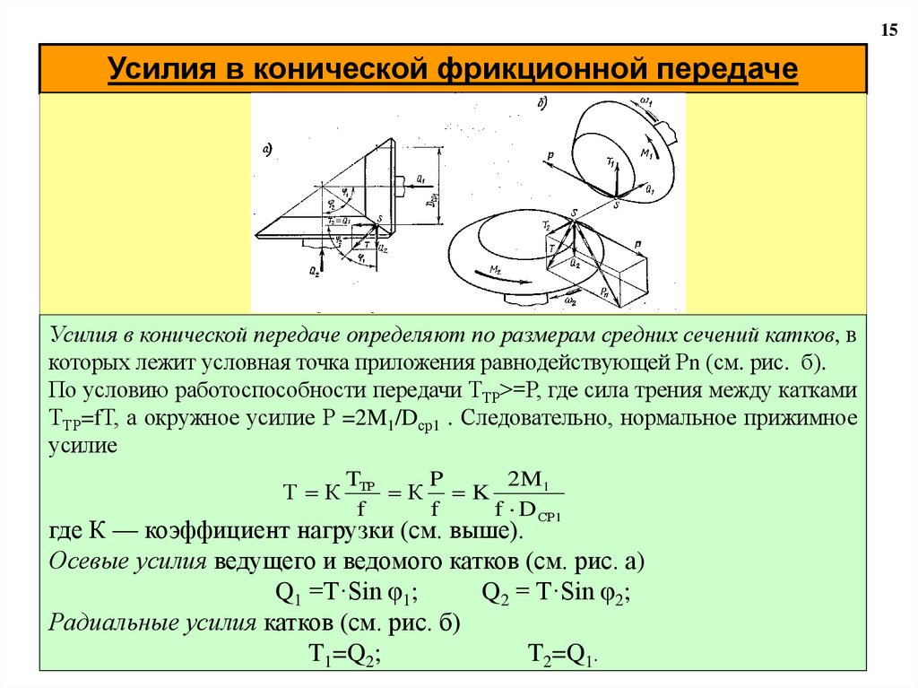 16. УСИЛИЯ В КОНИЧЕСКОЙ ФРИКЦИОННОЙ ПЕРЕДАЧЕ