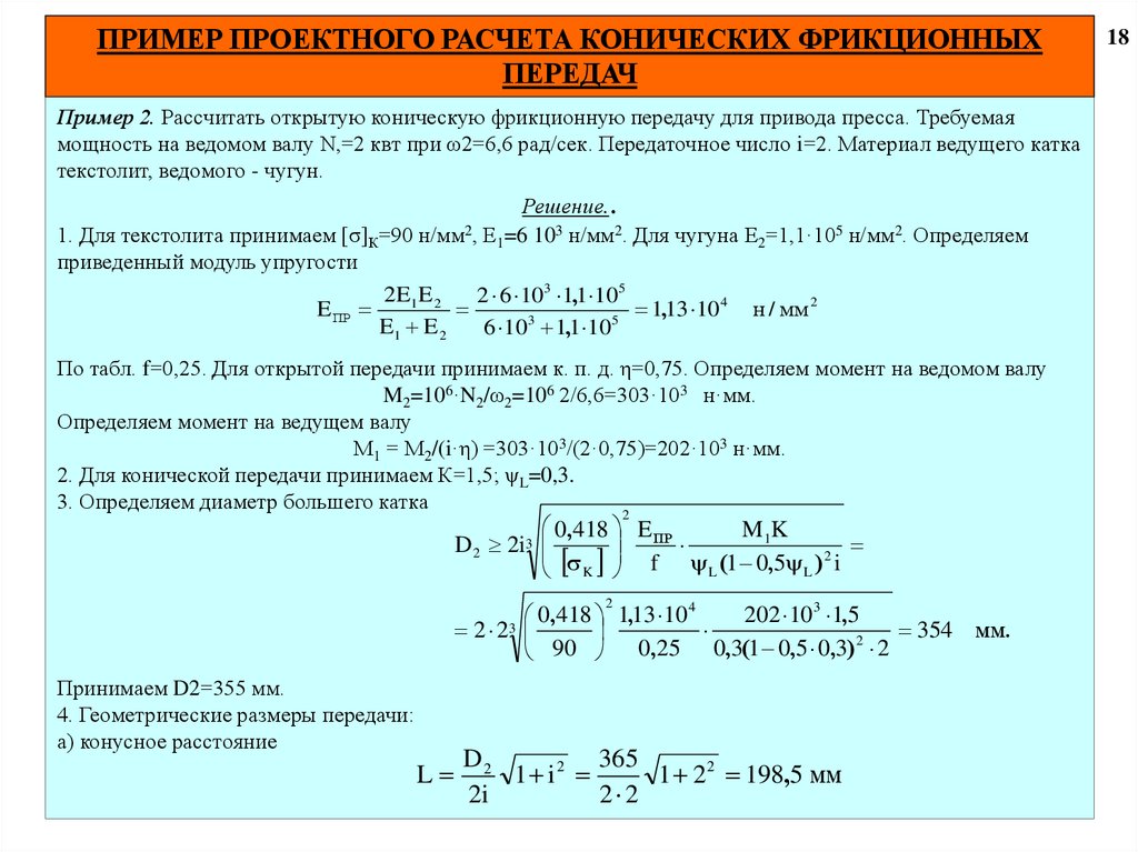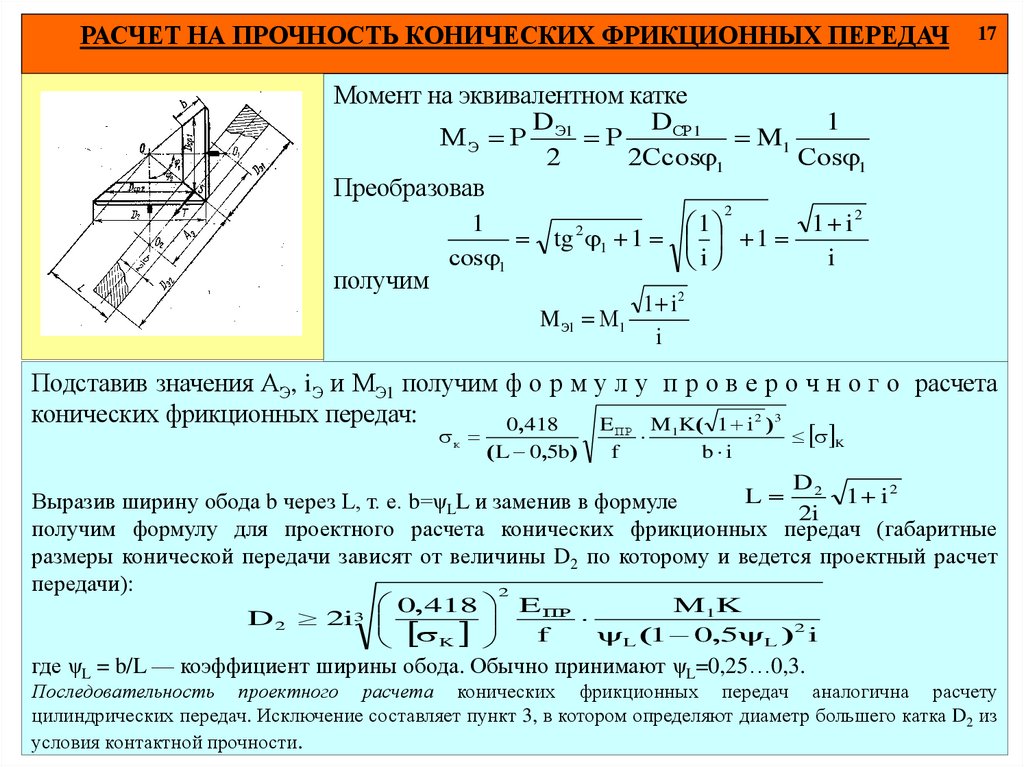 17. РАСЧЕТ НА ПРОЧНОСТЬ КОНИЧЕСКИХ ФРИКЦИОННЫХ ПЕРЕДАЧ