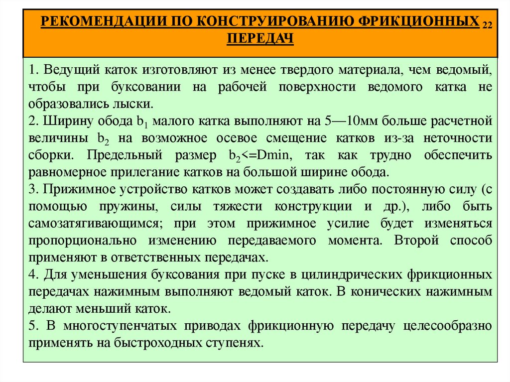 РЕКОМЕНДАЦИИ ПО КОНСТРУИРОВАНИЮ ФРИКЦИОННЫХ 22ПЕРЕДАЧ