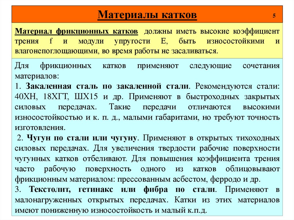 выше, прижимное усилие катков Т меньше. В закрытых фрикционных