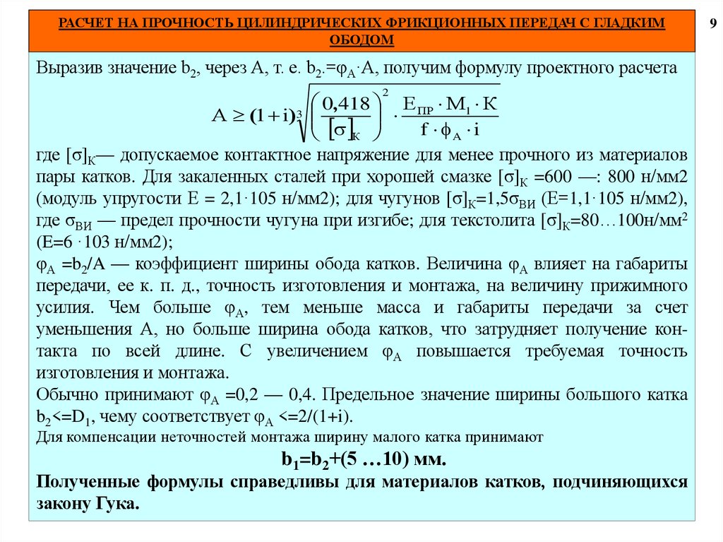 9. ГЕОМЕТРИЧЕСКИЙ РАСЧЕТ ЦИЛИНДРИЧЕСКОЙ ФРИКЦИОННОЙ ПЕРЕДАЧИ