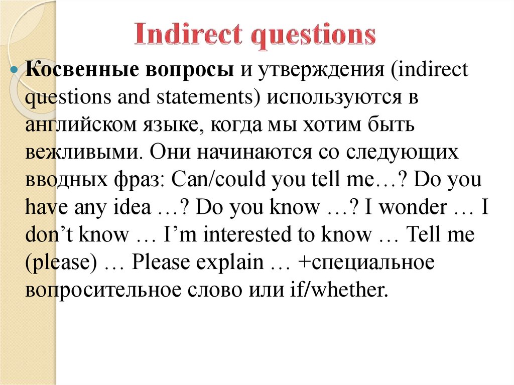 Косвенные вопросы и утверждения (indirectquestions and statements) используются в