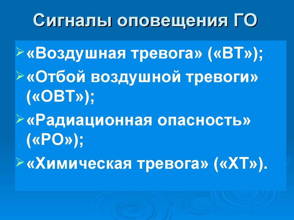Cигналы оповещения ГО«Воздушная тревога» («ВТ»);