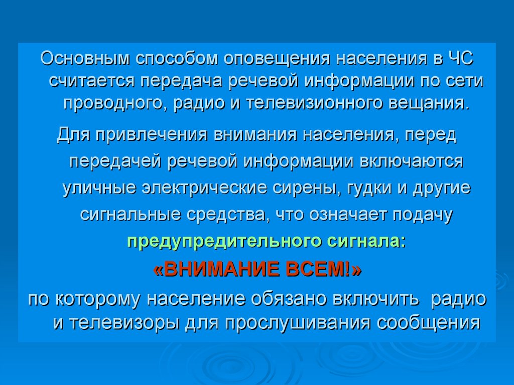Основным способом оповещения населения в ЧСсчитается передача речевой информации по сети