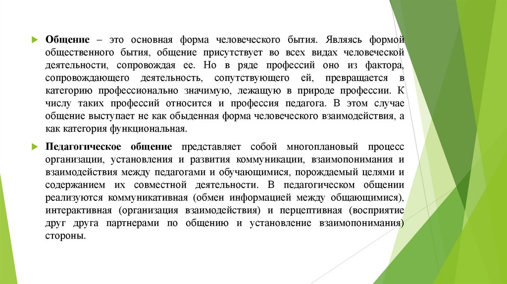 Общение-это основная форма человеческого общения, функциональная категория.Педагогическое общение-многоплановый процесс организации, установления и