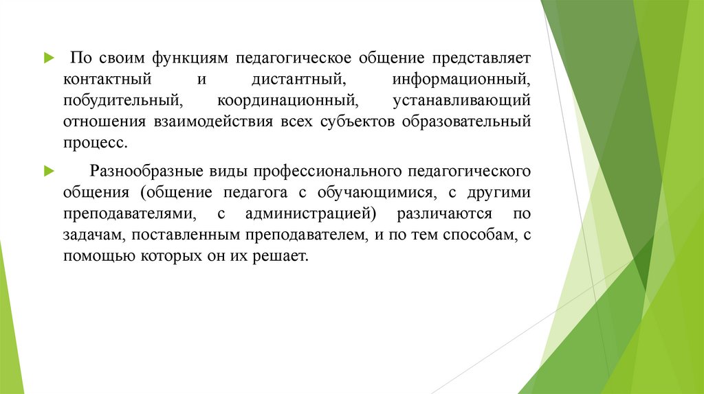 В педагогическом общении реализуются коммуникативная и перцептивная функции.