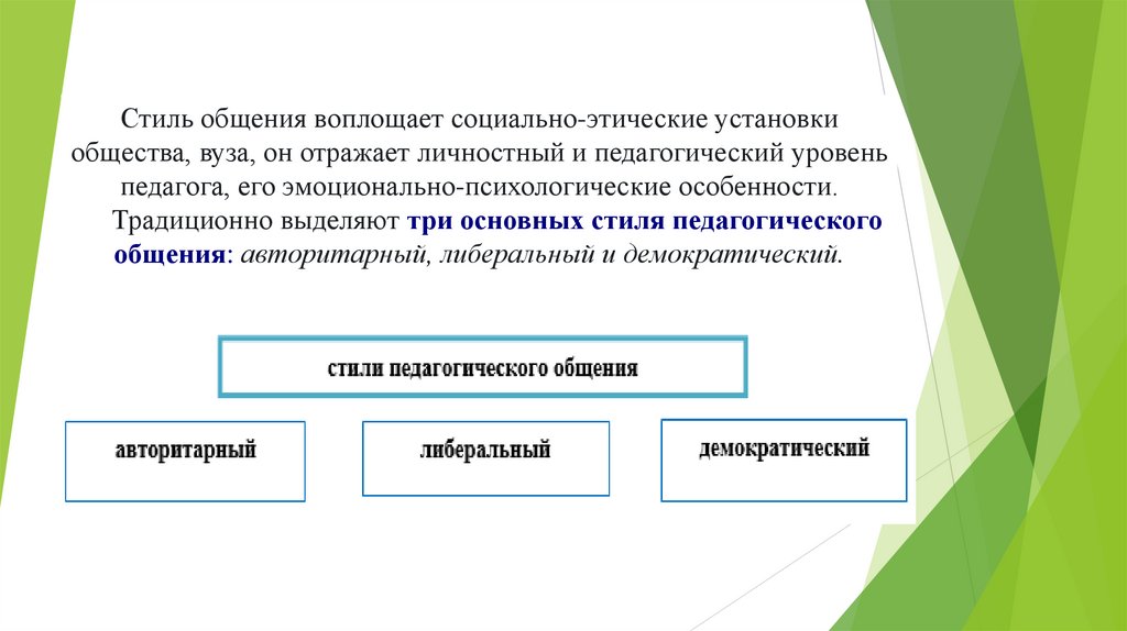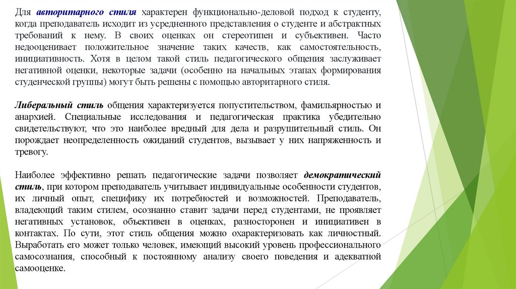 Традиционно выделяют 3 основных стиля педагогического общения: авторитарный,