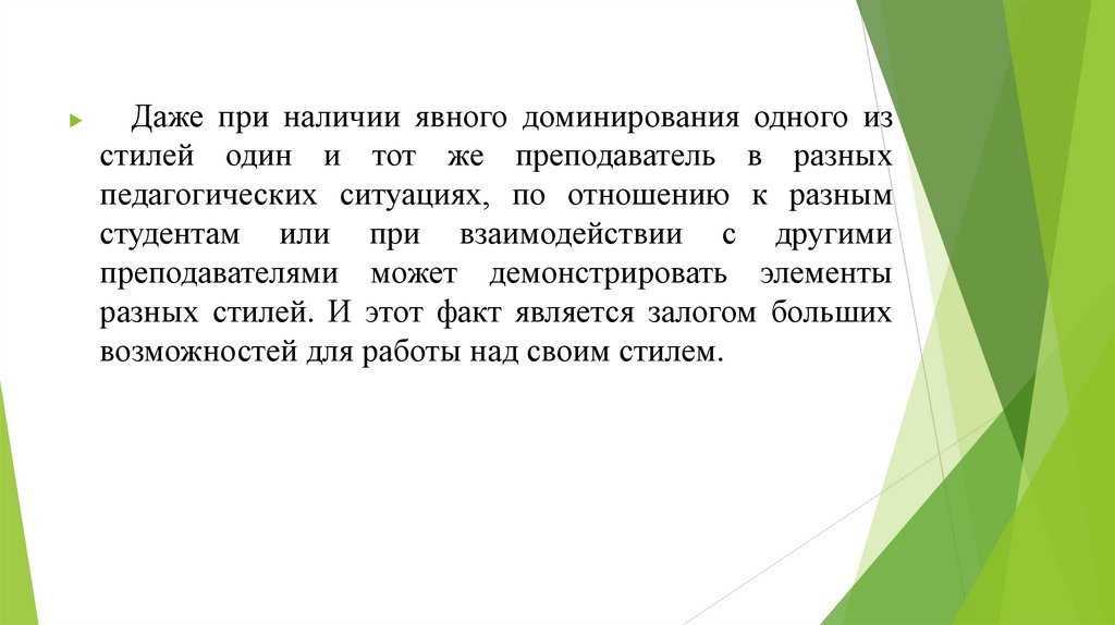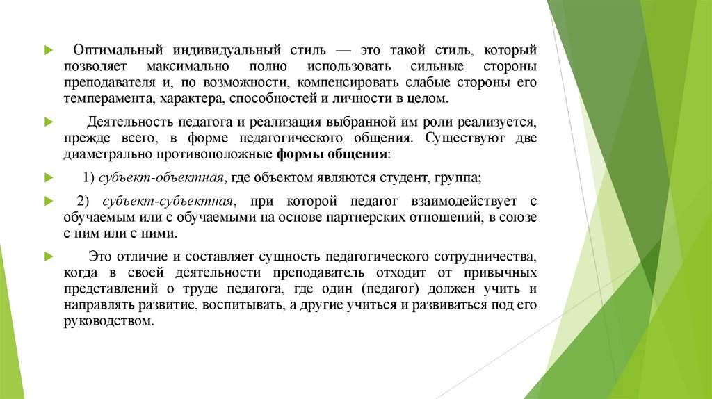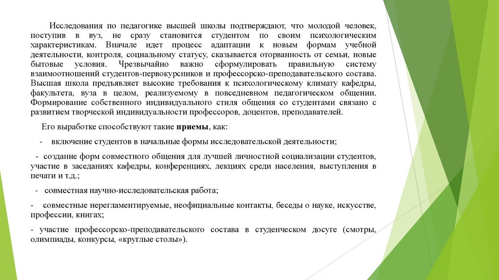 Формирование собственного индивидуального стиля общения со студентами связано с
