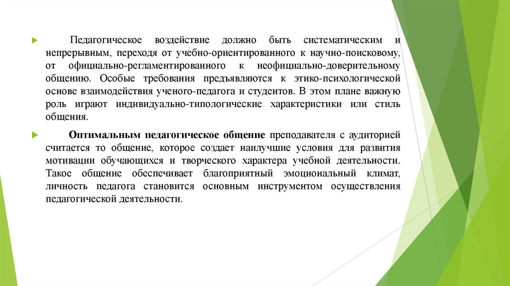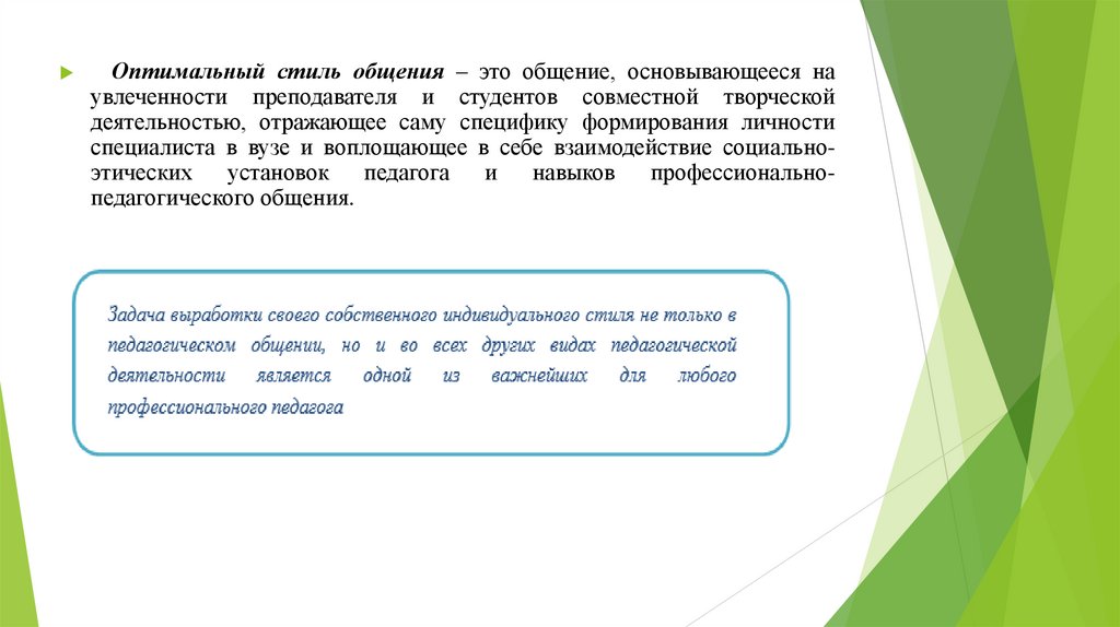 Оптимальный стиль общения – это общение, основывающееся наувлеченности преподавателя и студентов совместной творческой
