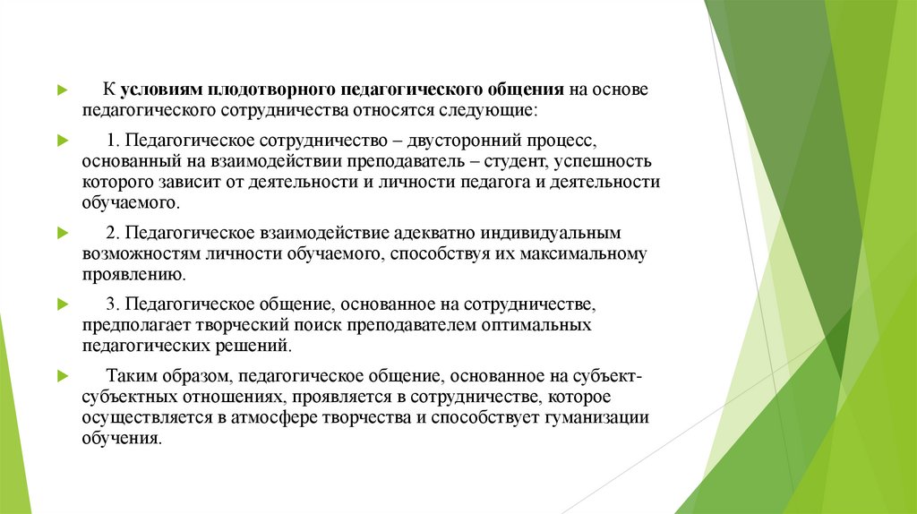 1. Педагогическое сотрудничество – двусторонний процесс,