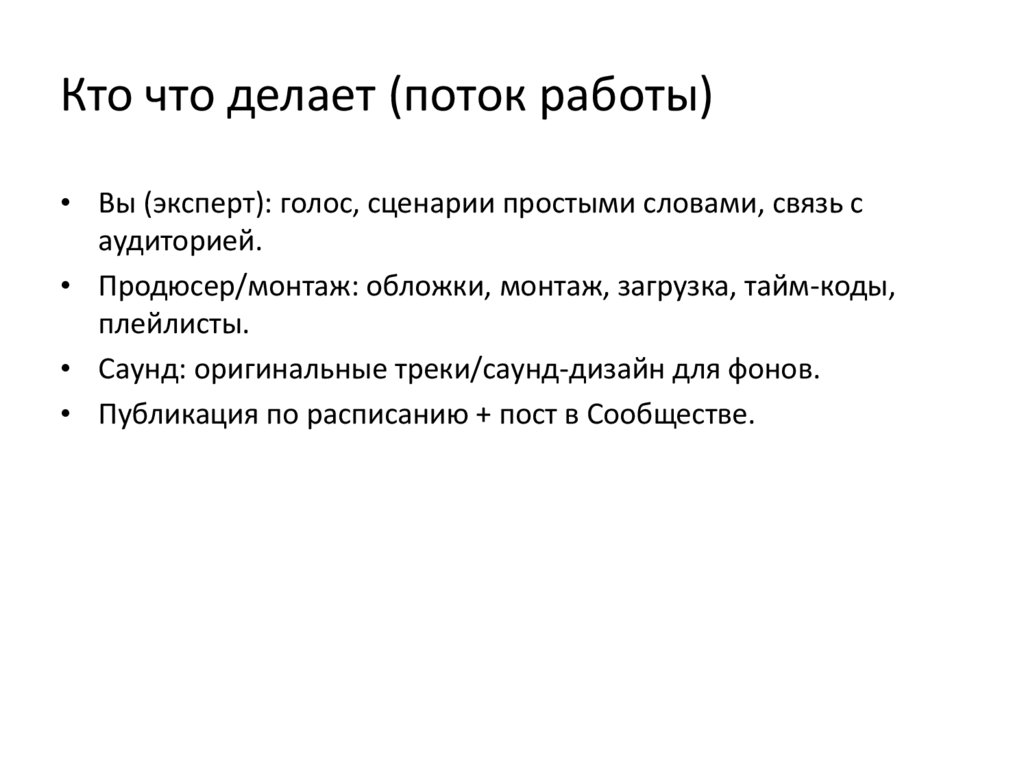 • Продюсер/монтаж: обложки, монтаж, загрузка, тайм-коды,