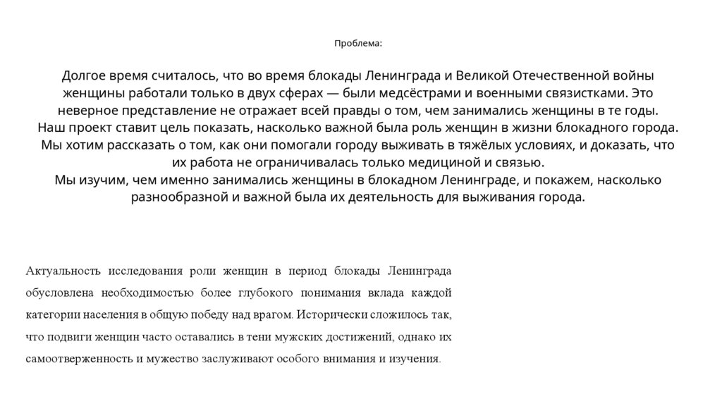 Актуальность исследования роли женщин в период блокады Ленинграда