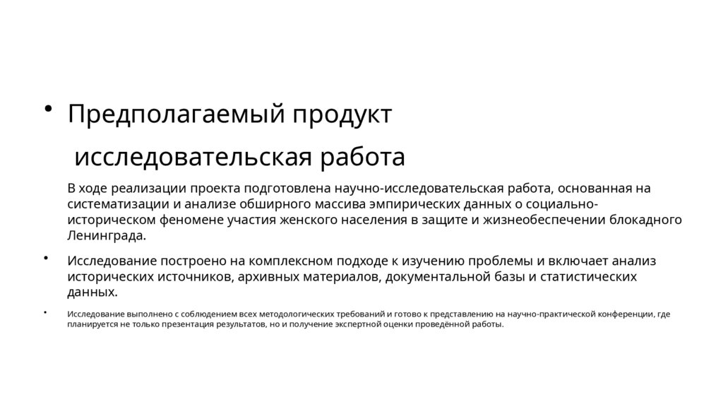 В ходе реализации проекта подготовлена научно-исследовательская работа, основанная на
