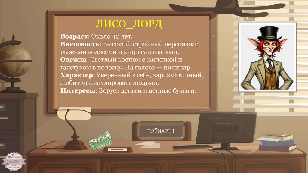 Интересы: Ворует деньги и ценные бумаги.