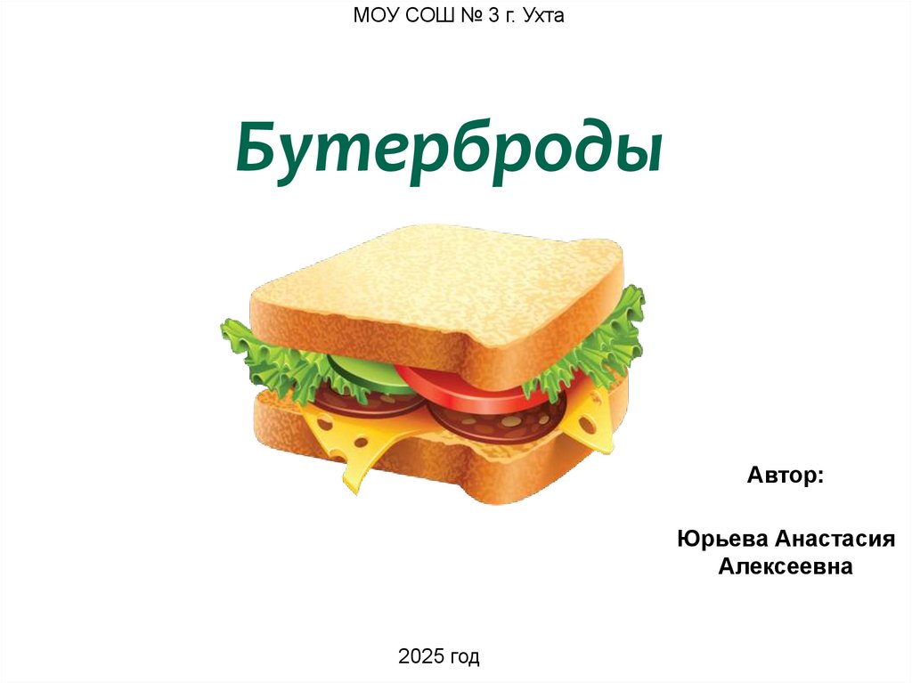 Закрытые бутерброды (сэндвичи) — это бутерброды, приготовленные из двухломтиков хлеба, на один из которых кладут начинку (мясо, рыбу, овощи, сыр и др.),