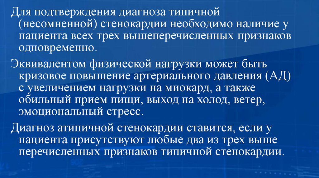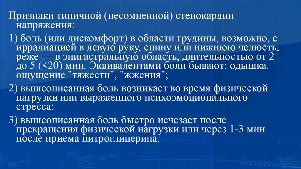 Признаки типичной (несомненной) стенокардиинапряжения: