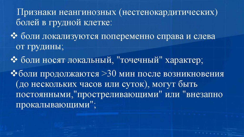 Признаки неангинозных (нестенокардитических)болей в грудной клетке: