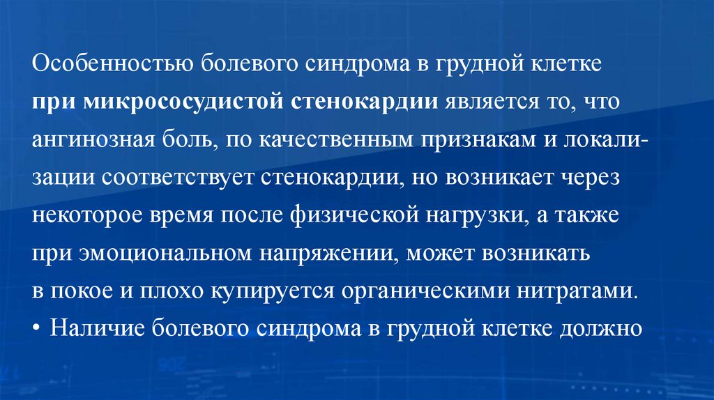 Особенностью болевого синдрома в грудной клеткепри микрососудистой стенокардии является то, что